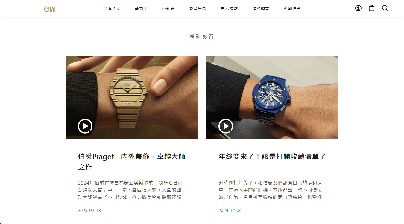 - 文章管理系統:品牌介紹、影音專區、近期推薦、勞力士世界等...