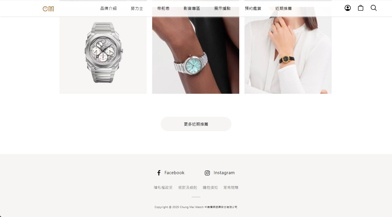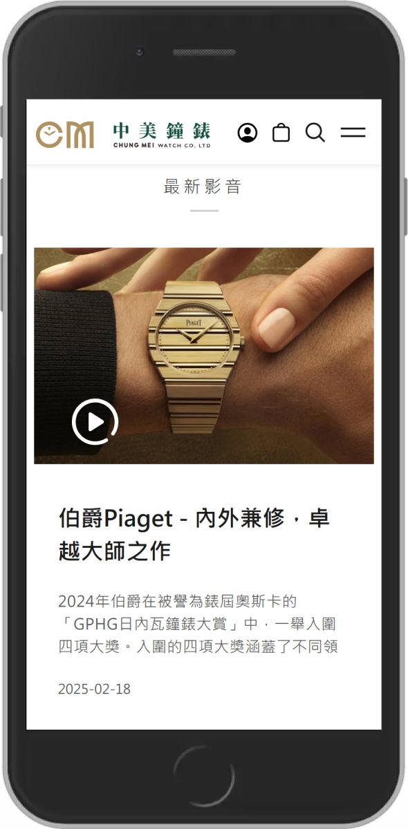 很榮幸與中美鐘錶由形象網站開始、錶款的管理系統、預約賞錶系統、線上購物系統,從小而大逐漸地將完整的網站拼圖給拼上,設計、切版與後台功能乃至虛擬主機的維運均由汘澍執行,網站的內容更新也委由汘澍執行,搭配勞力士的專業SEO團隊,打造最佳的網站體驗。